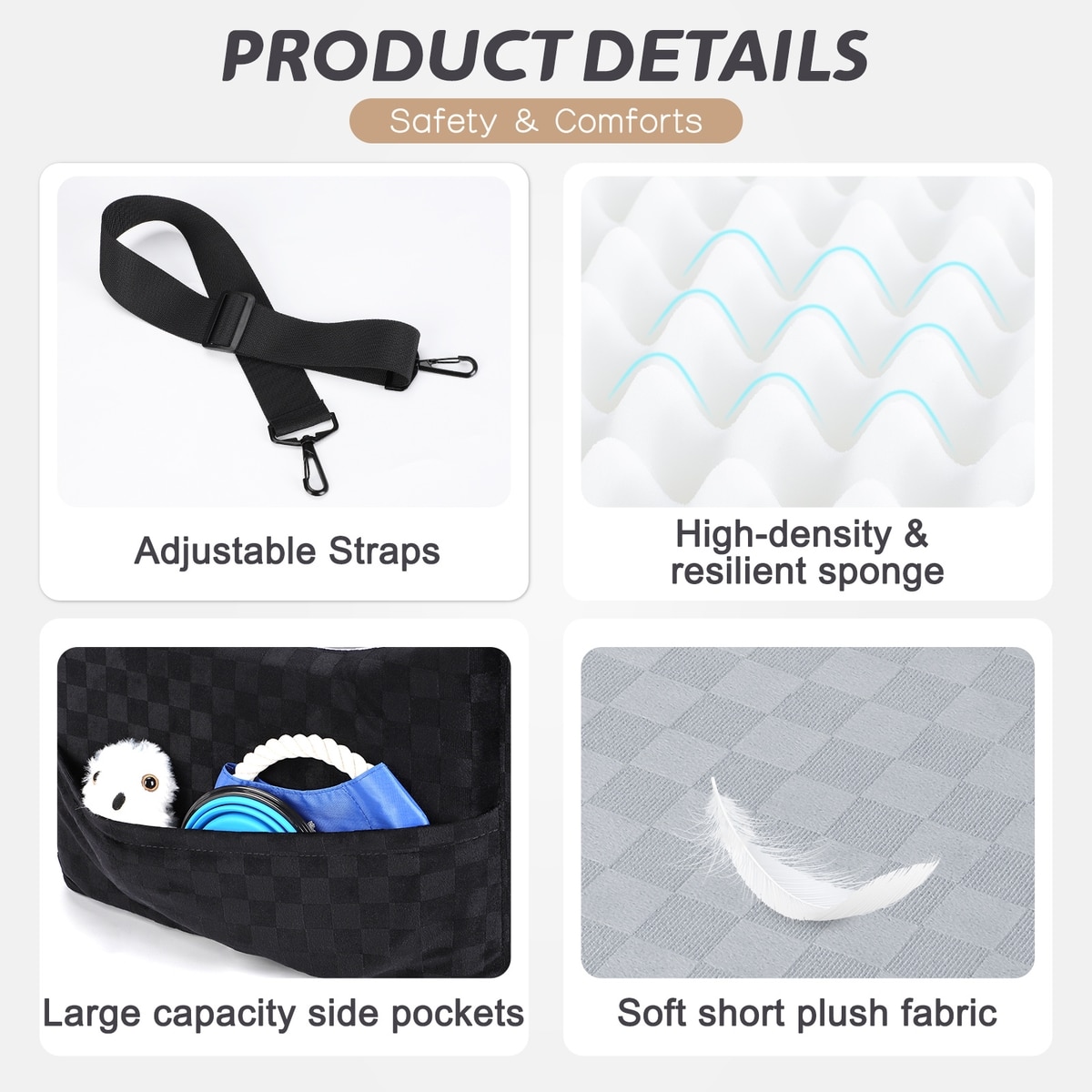 - Can be used in cars or at home, and includes storage pockets for added convenience.