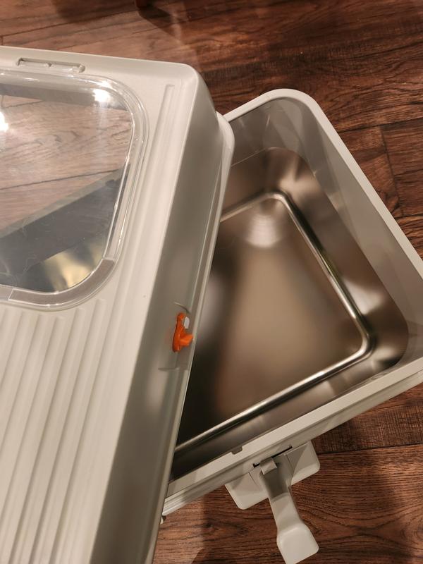 - Unique slide-out drawer design makes scooping and cleaning a breeze.