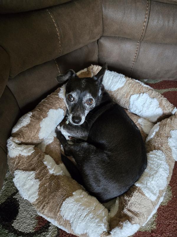 She absolutely loves these beds! I bought two of these beds, one for the living room and one for my husband‘s office. She was so excited and can’t wait to getup and snuggle under her soft blanket on these beds every day. They are absolutely perfect.