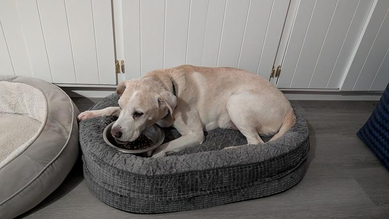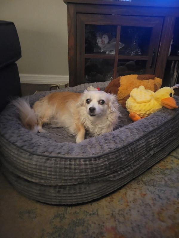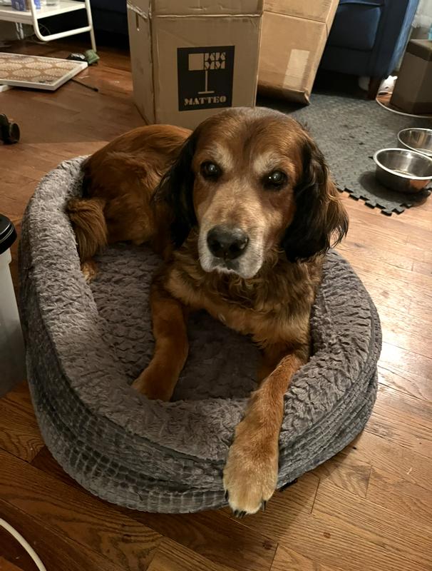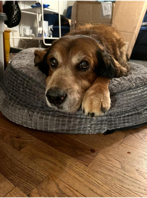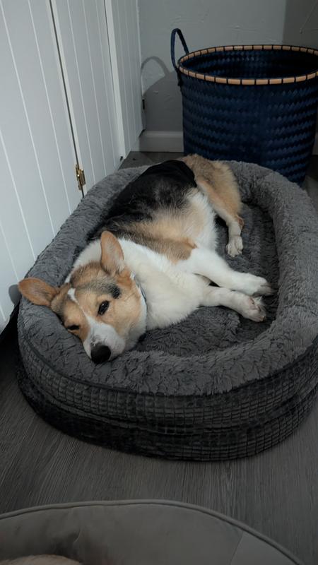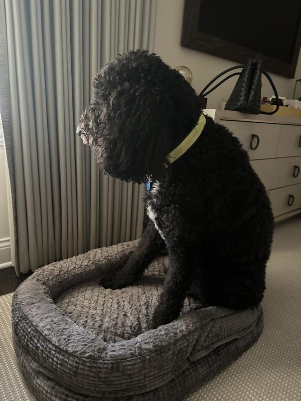 Nice dog bed, but not the best for dogs with mobility issues. Since the border on the bed doesn't have a gap, my senior corgi isn't able to get in or out without