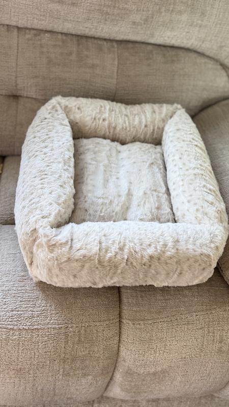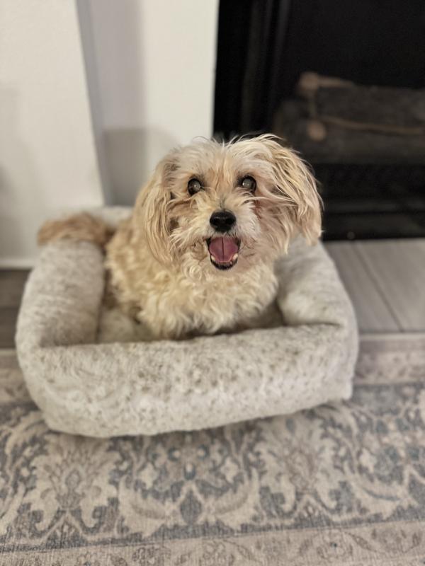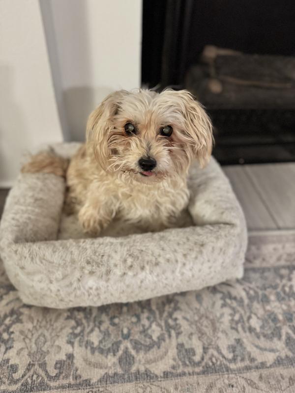 This is soooo soft. My yorkie bichon loves it. He can rest his lil head on the side and fall right asleep. The best feature is probably that the cover can be removed and washed. I just wish that the cover was waterproof on the inside to protect the foam. One day I’ll find a dog bed with this feature! Until then, I put a waterproof crib sheet between the foam and the cover to try to prolong its life.