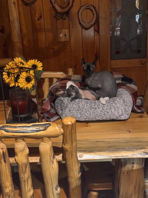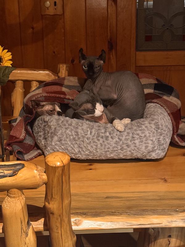 Oh my gosh my kitties couldn’t love this snuggly bed anymore. They all piled it and now sleep in it everyday. It’s fluffy soft and they love it. Perfect size