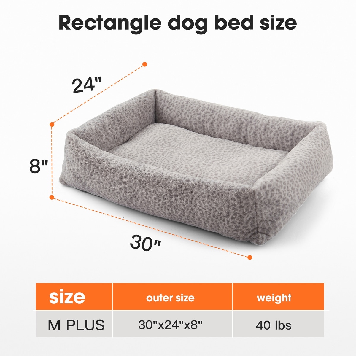JOEJOY Rabbit Fur Leopard Print Dog & Cat Bed with Anti-Slip Bottom & Removable Cover, Grey, Large