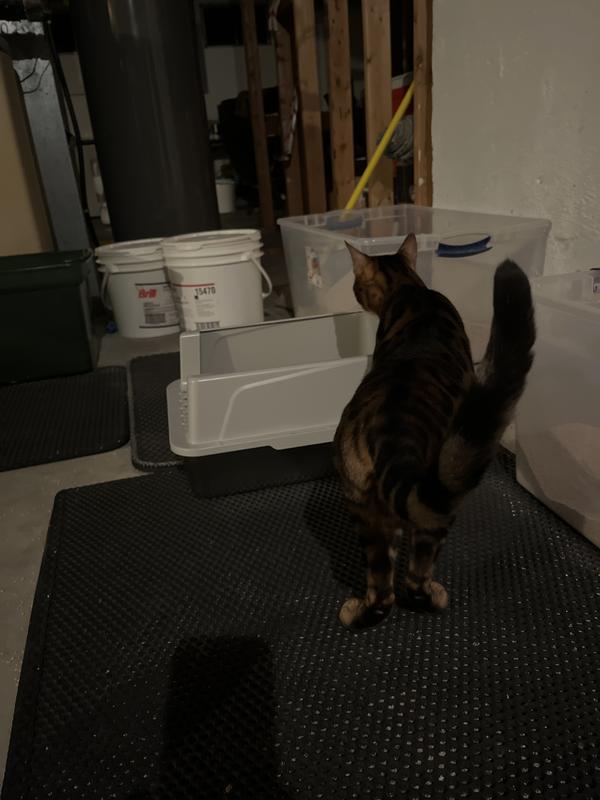 This stainless steel litter box is a good size. It is easy to clean and there is zero odor. I’m not sure if I didn’t see the litter mat in the box or if it was