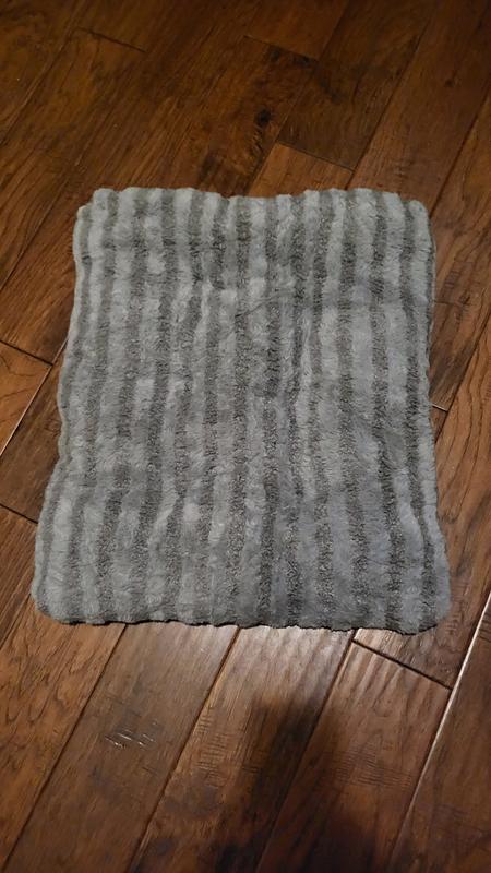 The JOEJOY TEDDY RABBIT FUR STRIPS ANTI SLIP BOTTOM is very cushiony and soft. I was expecting it to be a bit softer but I'm sure my cats don't care. I do appreciate