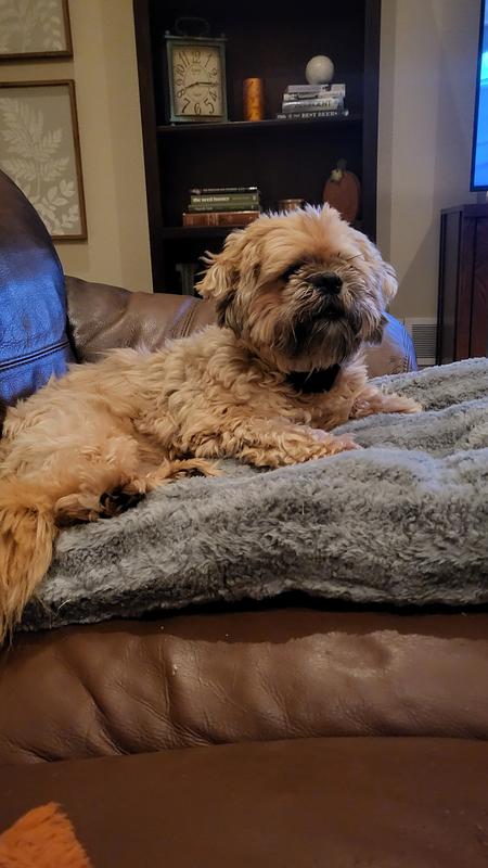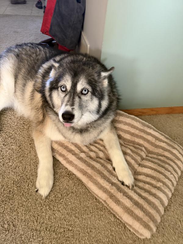 While this particular size bed is intended for a smaller dog, it was exactly what my 45 lb Xoloitzcuintli (hairless dog) needed as a “seat cushion” while we are at dog shows. If she wants to sit or lay down while we wait for our turn to go in the ring, she hates sitting on the cold concrete floor (and who could blame her). We’d been using a flat throw blanket but it was too thin for her liking and would never stay in place. With this bed, she gets the softness of the rabbit-like fur material with an added “no slip” feature on the bottom to keep it in place. We have finally found the perfect travel bed!