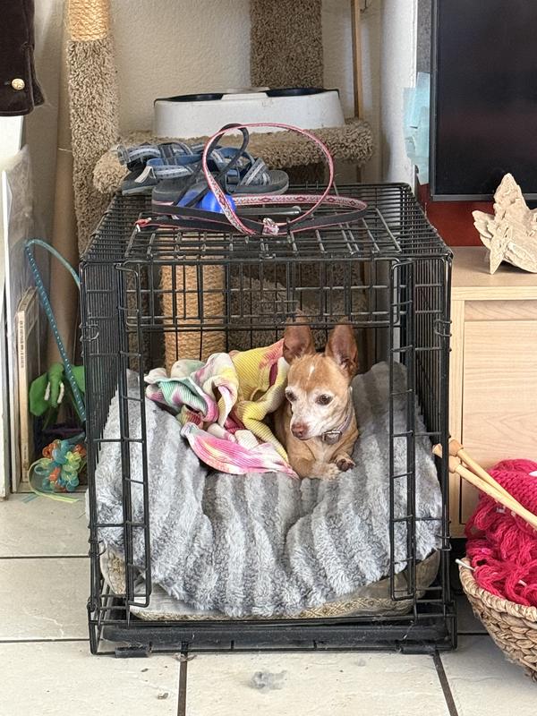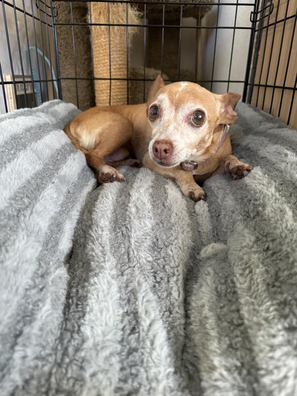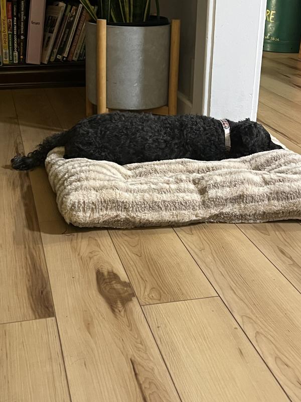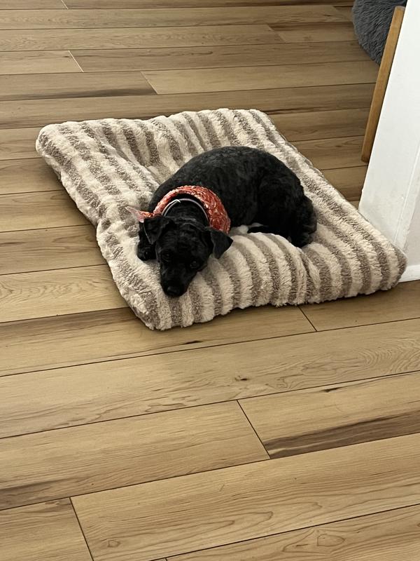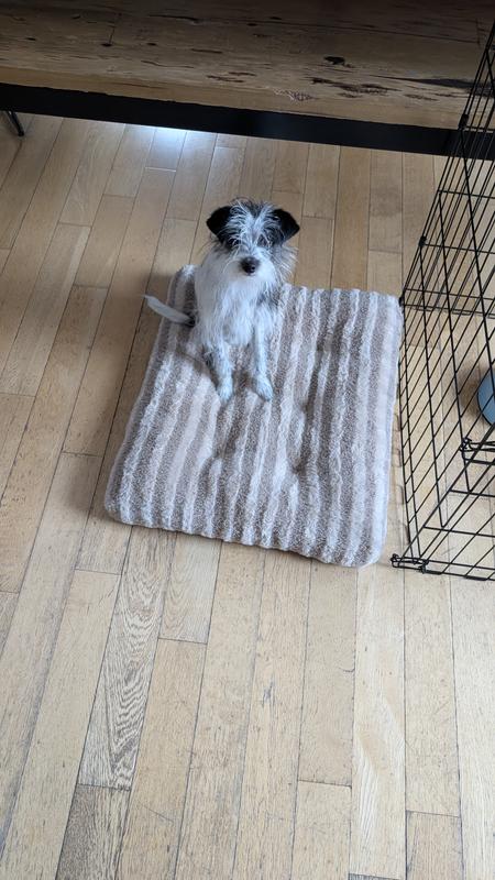 This is the perfect bed for my little chiweenie! Even though she is small she can be really rough on a crate pad. She tries to paw them into a “nest” and if it’s not fluffy enough she will chew holes in it trying to get more stuffing out. So far this one has met with her approval. No chewing and I’ve noticed that she is actually choosing her crate over a spot on the couch lately because the bed is so soft and cozy! You can’t really ask for higher praise than that. I also really like that it's a neutral color that doesn’t look out of place in my living room and that it will be easy to wash. I wish I had found this pad before wasting money on the last two, honestly. It’s just the right amount of plush without shedding fibers everywhere and my little girl feels comfy and cozy in her bed now.