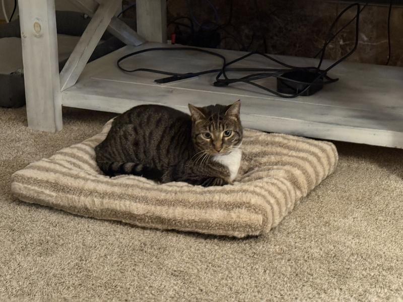 My cat is the one who has claimed this as “his bed” even though my teddy bear dog likes the bed as well. The bed is well made and soft. I personally like the looks of the bed with the stripes. I have washed it once and let it air dry. It retained its shape and looks good as new. Another feature that I appreciate is that the bottom is anti-skid so it stays in place on hard floors. I definitely recommend this bed for dogs and cats who want a soft, comfy place to sleep.