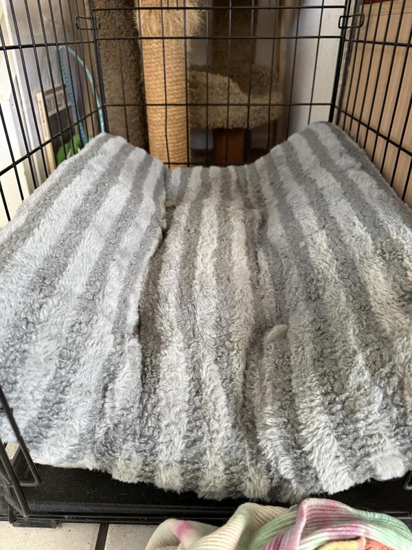 JOEJOY Teddy Rabbit Fur Strips Anti-Slip Bottom Dog & Cat Bed pad with Removable Cover, Grey, 23 × 18 × 3-in