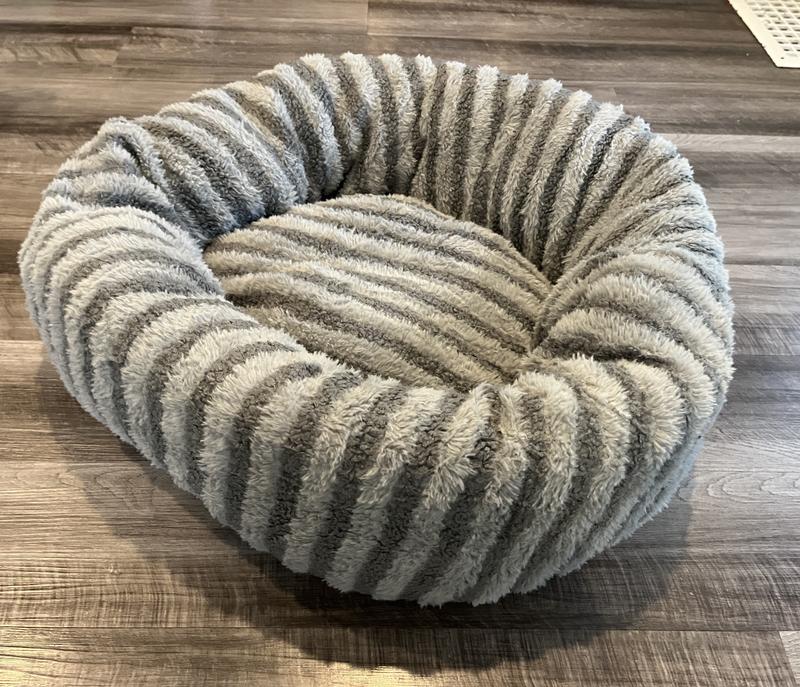 JOEJOY Washable Anti Slip Bottom, Calming Donut Puppy, Dog & Cat Bed with Removable Zipper Cover, Grey, 23 x 23 x 8-in