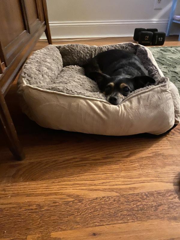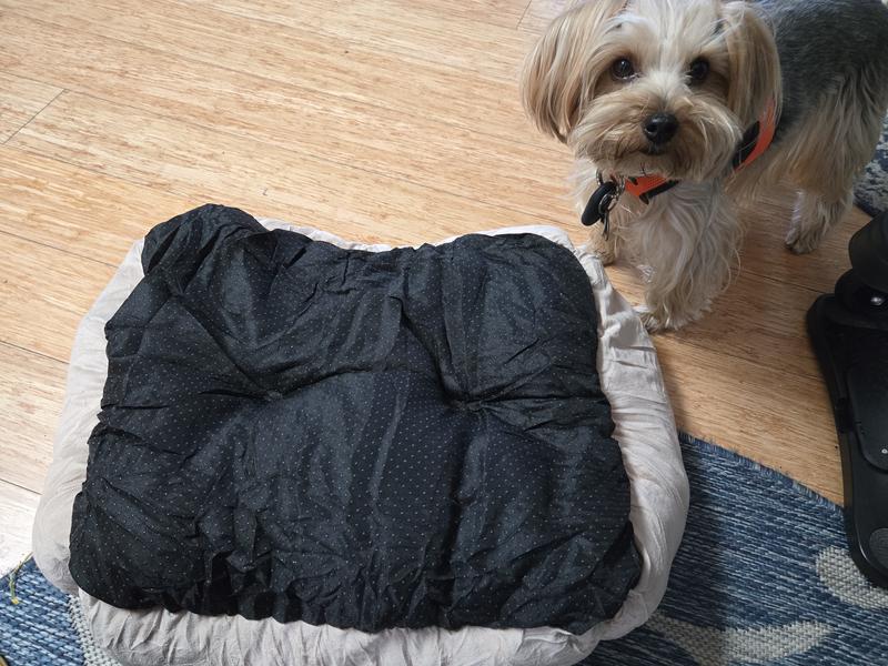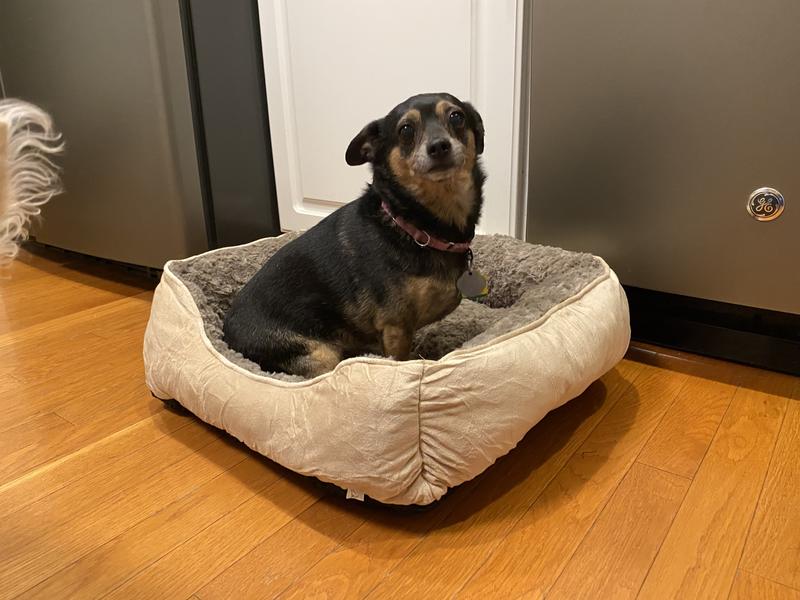 Seriously the best little doggy bed we ever had! My little Toby loves it so much! It's soft, and snuggly and the perfect size for my little 11 year old, 10 lb. boy. I made the mistake of letting him look at it when I took it out of the wrapping. He could hardly wait the 24 hours until it reached maximum fluffiness. Now, even if the bed is behind the couch, he'd rather be on it than next to me on the couch. So I have to keep moving it from my desk to the family room so I can see him. And it's the perfect size to transport for overnights. I got the beige, which really works with my beige and blue decor. We love this product so much!