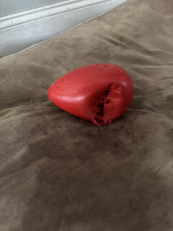 This toy has a strong and hard outside that is difficult to bite or puncture.
