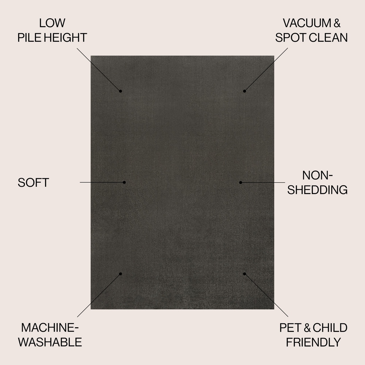 JONATHAN Y Twyla Classic Solid Low-Pile Machine-Washable Dog & Cat Area Rug, Dark Gray, 5 x 8-ft