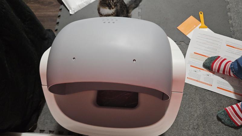 Pretty easy setup and has is an open top litter box. The app is also use friendly. The only thing I found odd was that the bottom where the litter sits to use