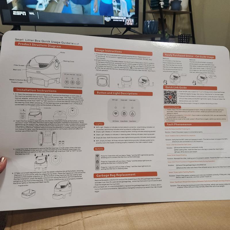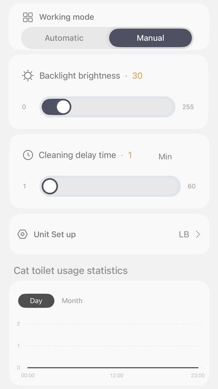 The setup instructions were confusing as written and having to dismantle it to clean seems like it will be a complicated process. The entrance to the litter box is quite high, about 12 inches from the ground. Connecting to wifi in the app was easy and straightforward. The instructions say that you can use any kind of clumping litter, I am using a granular tofu litter, and it only holds about 4-5 lbs of litter because the litter area is so much smaller than a regular litter box, even though the box itself is huge. My two cats have not been interested in using it yet, I think it will take more time. I think it could get messy as they don’t always go right in the center of the box. The app has a manual setting as well as automatic. The manual setting allows you to decide when to sift the litter. It will also give you a weight measurement for your cats when they use the litter box.
