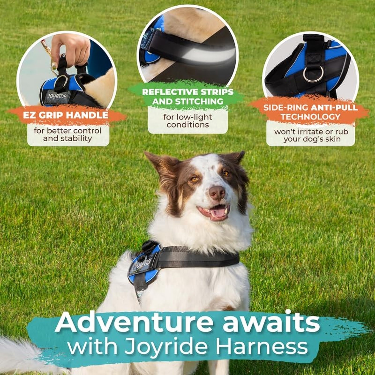 The quick and easy-to-use design gets you and your pup ready for a walk in just 2 seconds. The Joyride Harness is also adjustable to fits dogs from 7 to 140 lbs., making it suitable for any breed.