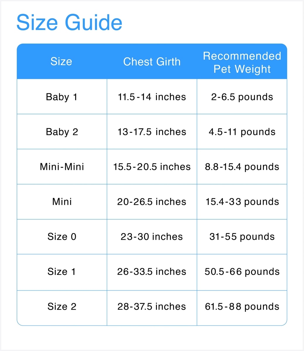 | Size | Chest Girth | Recommended Pet Weight |
