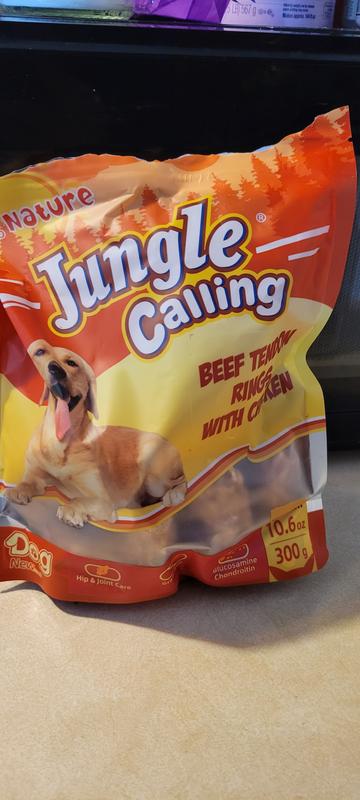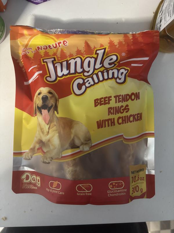 Jungle Calling Chicken Wrapped Beef Tendon Ring Dog Chew, 10,6-oz bag