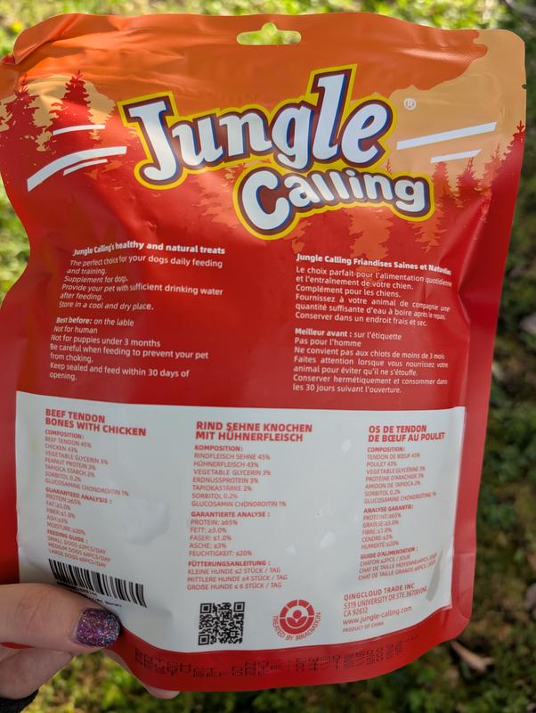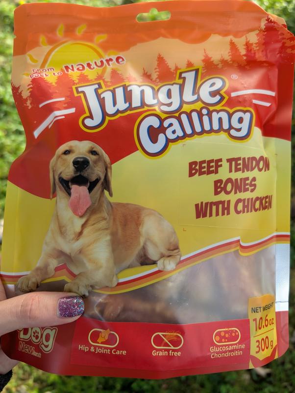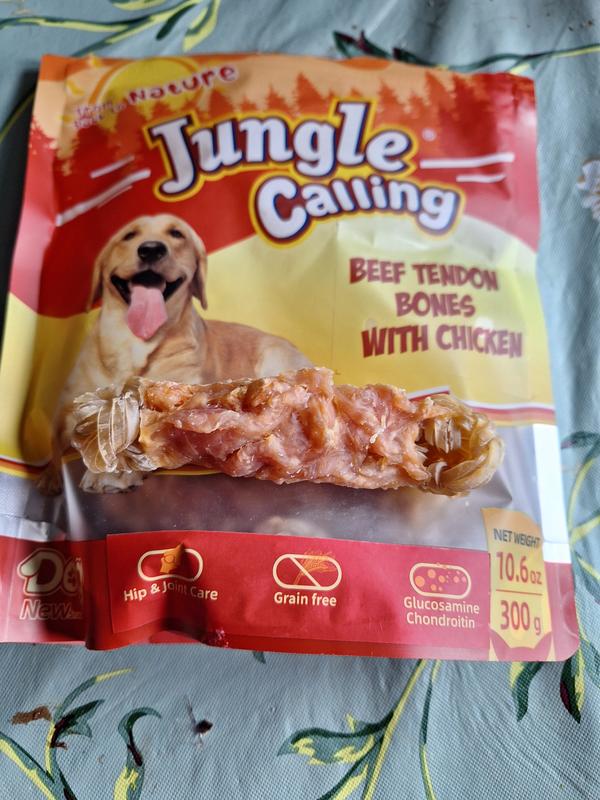 Jungle Calling Chicken Wrapped Knotted Beef Tendon Bones Dog Chew, 10.6-oz