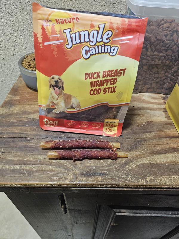 Jungle Calling Rawhide-Free Duck Wrapped Cod Sticks Dog Treats, 10.6-oz bag