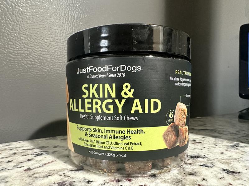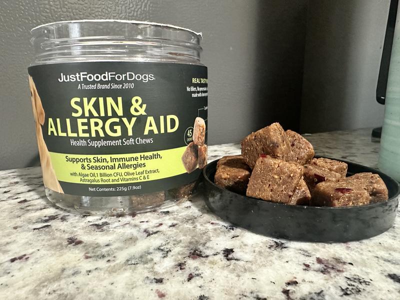JustFoodForDogs Skin & Allergy Care, Seasonal Allergies, Itchy Skin, Inflammation, Immune Support Soft Chews Supplement for Dogs, 45 count