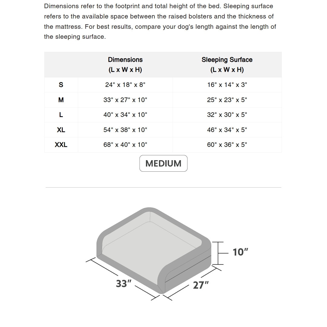 | Medium | 33 inches | 27 inches | 25 inches x 23 inches | 5 inches |