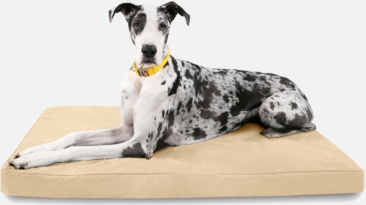 - Made from a single layer of dense foam with no glue or adhesives, the mattress eliminates pressure points and provides firm support for your dog’s joints, hips, and spine.