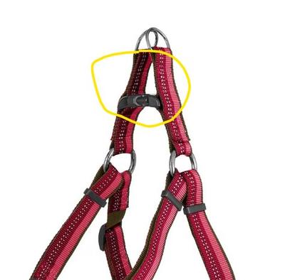 This harness fits over the front two legs, and has a strap that goes across the dog's back.