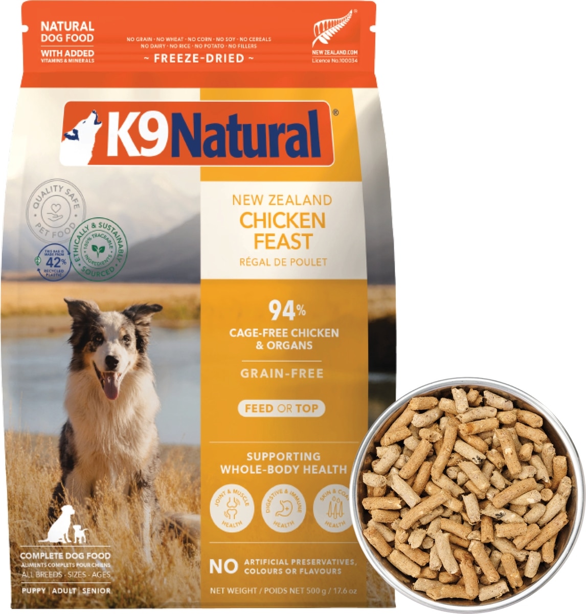K9 Natural New Zealand Chicken Feast Grain-Free Freeze-Dried Dog Food, 17.6-oz bag