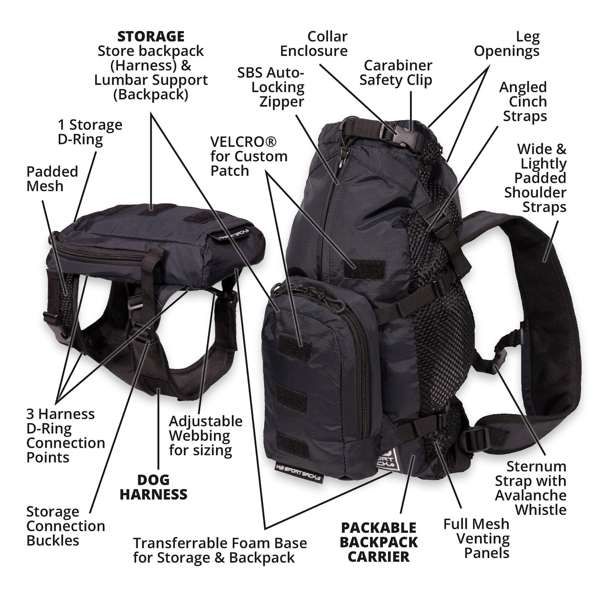 K9 Sport Sack Walk-On Packable Backpack Dog Carrier, Black, Medium