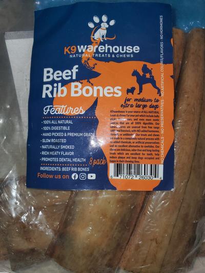 K9warehouse Beef Rib Bones Dog Chew Treats, 8 count