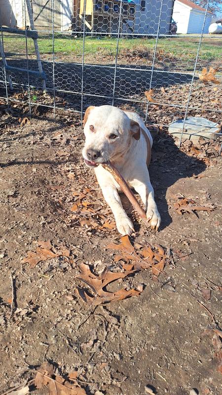 They werent kidding when they said long/large dog. This will definitely take my dogs a bit of time to work on. I do plan on cutting them in half so my smaller dogs can also have them. Itll be a good distraction for them so I can get a few chores done, lol.