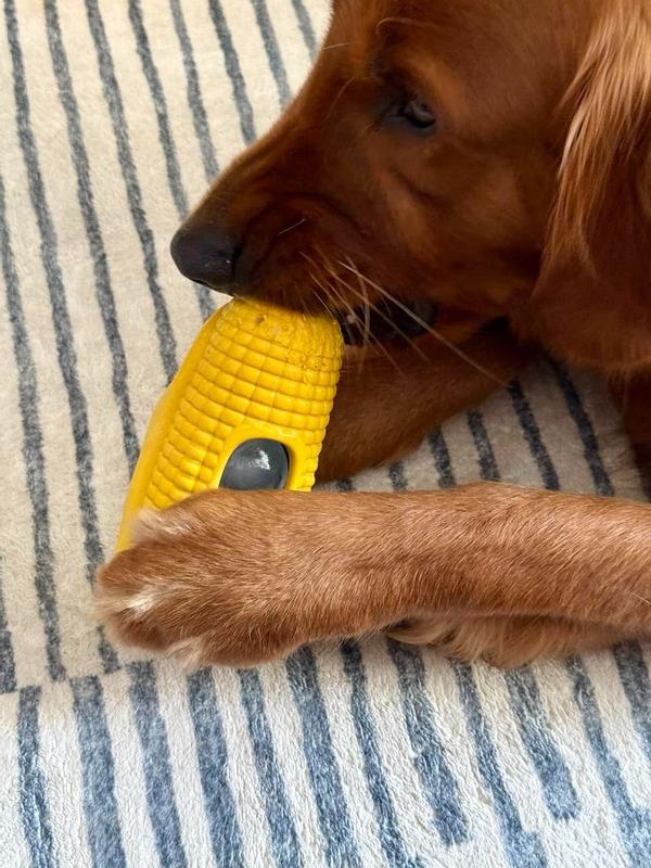 KADTC ALl IN ONE 2 in 1 Durable Corn Fillable Freeze Dog Chew Toy, Yellow, Large