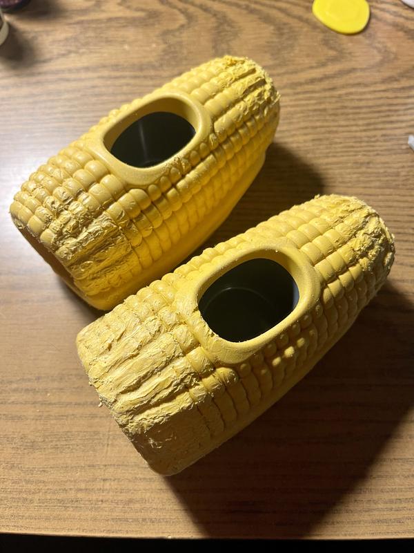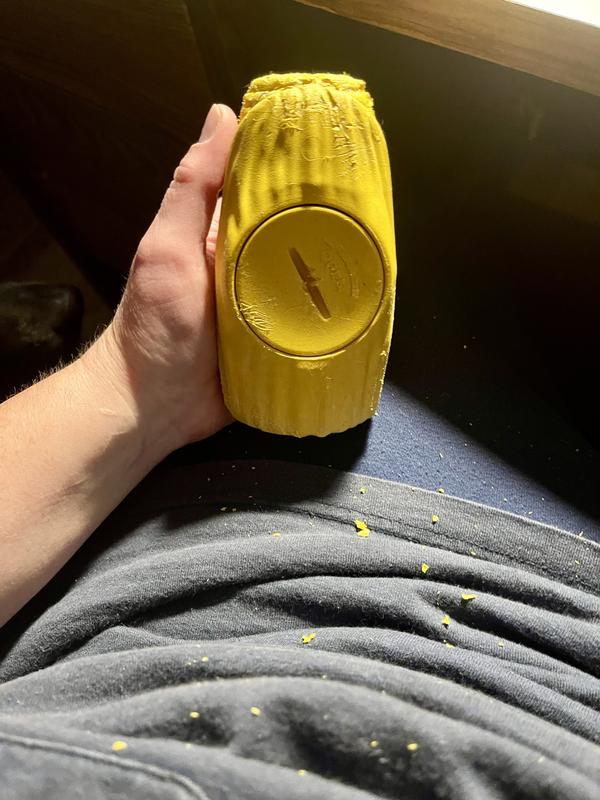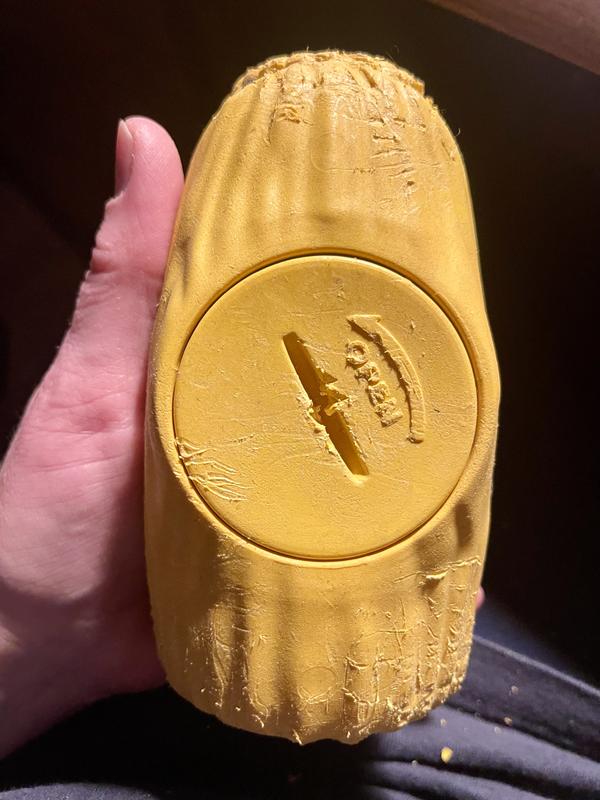 I bought two of those for our dogs for an early Christmas present. About the 3rd time using them I can’t get them open from the bottom. They are jammed and another thing there are yellow shavings all over. I have to use a lint roller to clean them up. Our dogs love doing these but they are no fun now.