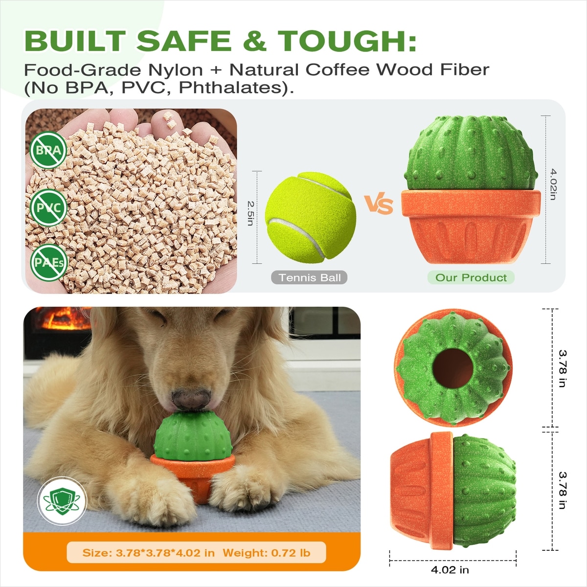 KADTC ALl IN ONE 3 in 1 Cactus Fillable Freeze Enrichment Dog Treat Dispenser Chew Toy, Green, Large