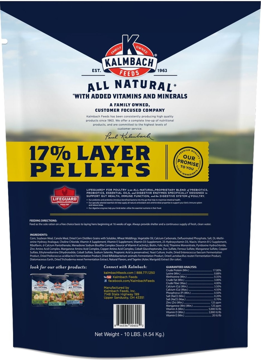 Kalmbach Feeds All Natural 17% Protein Layer Pellets Chicken Feed, 10-lb bag