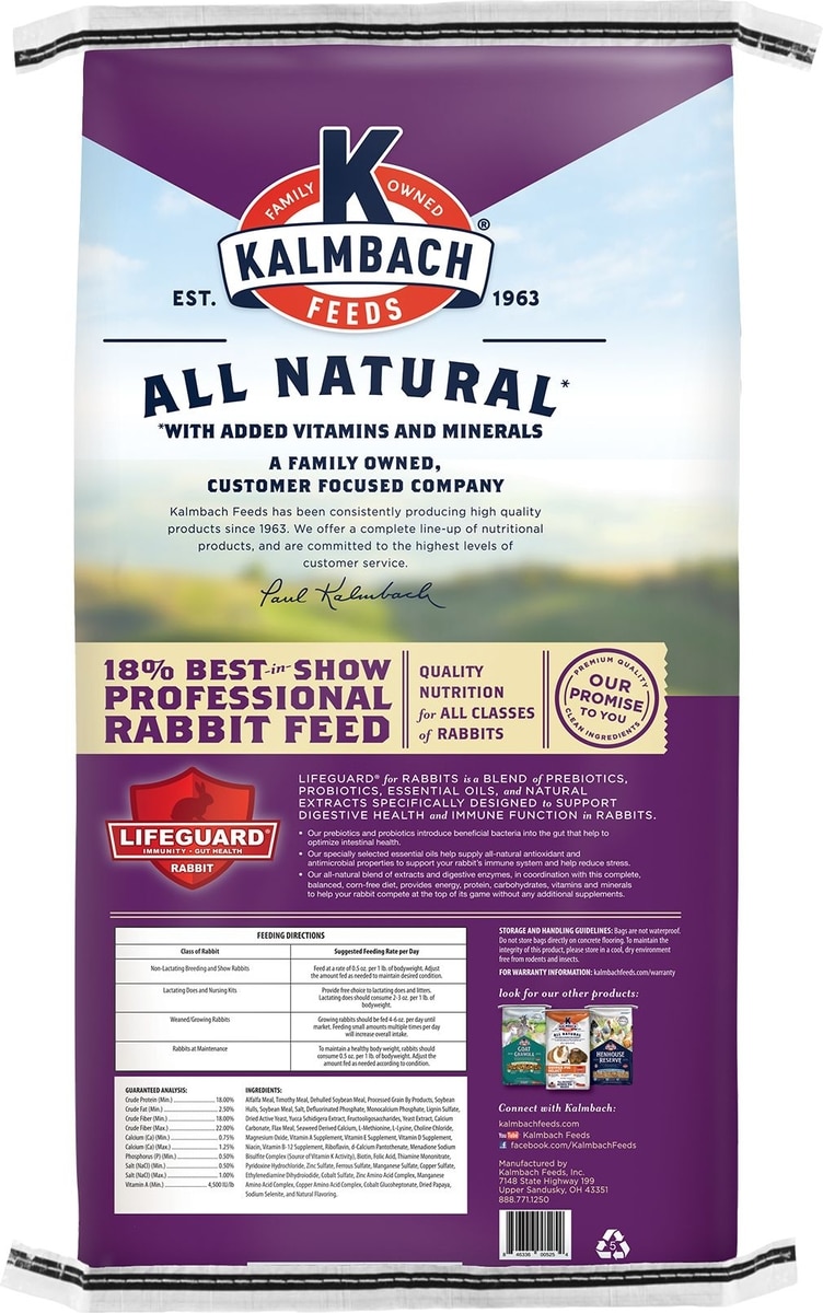 Kalmbach Feeds Best in Show 18% Professional Rabbit Feed, 50-lb bag