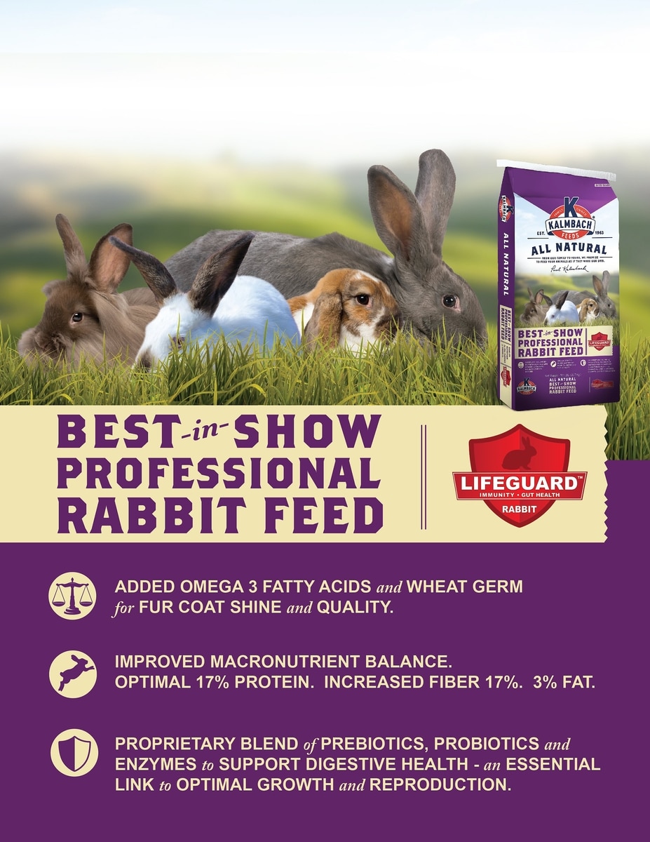 - Kalmbach Feeds Best in Show 16% Professional Rabbit Feed, 50-lb bag$39.99 Chewy Price$37.99 Autoship PricePromo, New Customers Only: Spend $49+, Get $20 eGift Card
