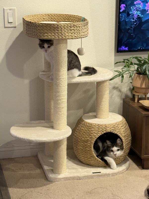 KAMABOKO 39-in Indoor Natural Sisal Cat Tree with Scratching Posts, Hand-Woven Condo & Top Perch, Beige