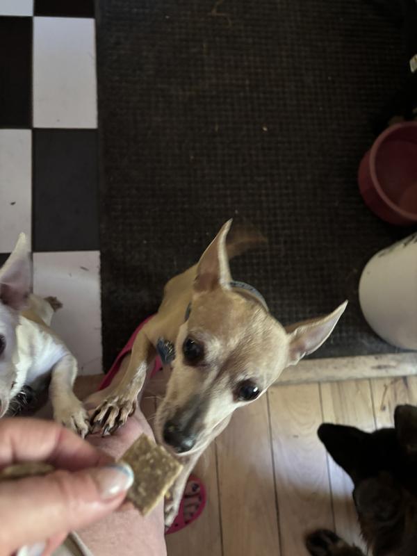 My dog is currently on a kidney diet, so treats are a rare occasion and given only sparingly. That said, these Karoo Wild Rosemary Training Bits are his absolute favorite special reward! He normally doesn’t bother with counters or the treat container, but the moment I put these in there, he was all over it, sniffing, pawing, and clearly excited. The texture is soft and chewy, perfect for training or breaking into smaller pieces, and the rosemary seasoning seems to make them extra enticing. While I have to be mindful of how often he gets them, it’s clear these are something he truly loves. For us, they’ve become a “special occasion” treat that feels worth it every single time. Highly recommend!