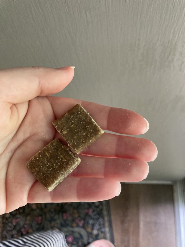 These are a great, easy to use treat, especially for training. They break apart easily if you need smaller pieces, and they seem to be extra tasty, as our dogs loved them - great especially if you need a good high Value treat.