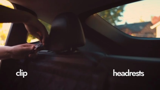 Use spread the cover across the backseat with the mesh panel facing forward. Loop the headrest straps over the seat headrests and clip securely. Insert the two side support pipes into the zippered side channels. Zip up the side panels, the reinforced piping creates a straighter, safer barrier. Adjust straps for a snug fit. Use the dual seatbelt openings to attach the included pet seatbelt leashes. Care spot-clean with a damp cloth or sponge. For deeper cleaning, hand wash with mild soap and cold water. Hang or air dry only. Do not machine wash, bleach or tumble dry (to protect the reinforced piping).