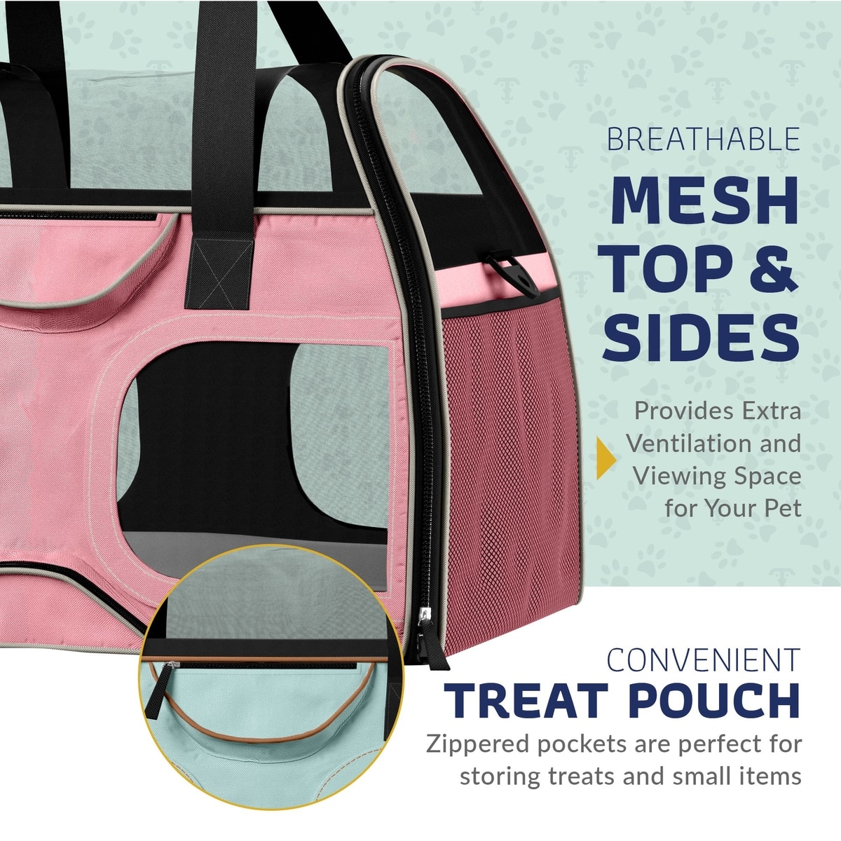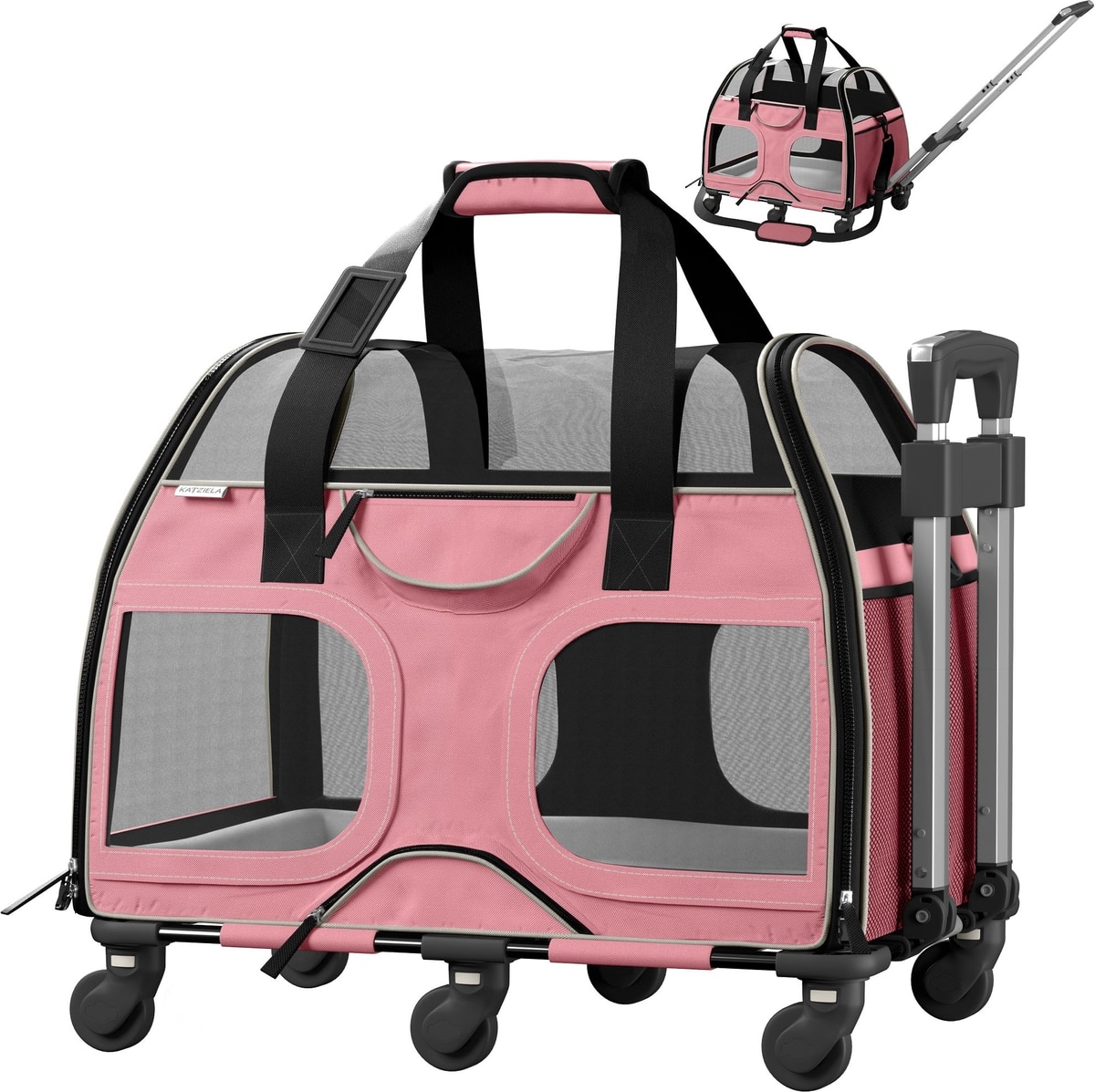 Katziela Luxury Rider Pro Removable Wheels & Double Telescopic Handle Airline-Approved Dog & Cat Carrier Bag, Pink/White