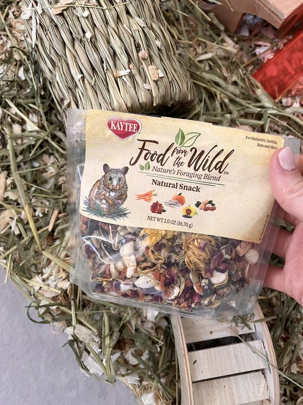 The animal nutrition experts at Kaytee developed Food From the Wild blend for the forager in your family. Inspired by the ancestral feeding habits of small animals in their natural habitats, these foraging blends are crafted with premium timothy hay-based pellets plus a medley of whole fruit, vegetable and flower pieces.