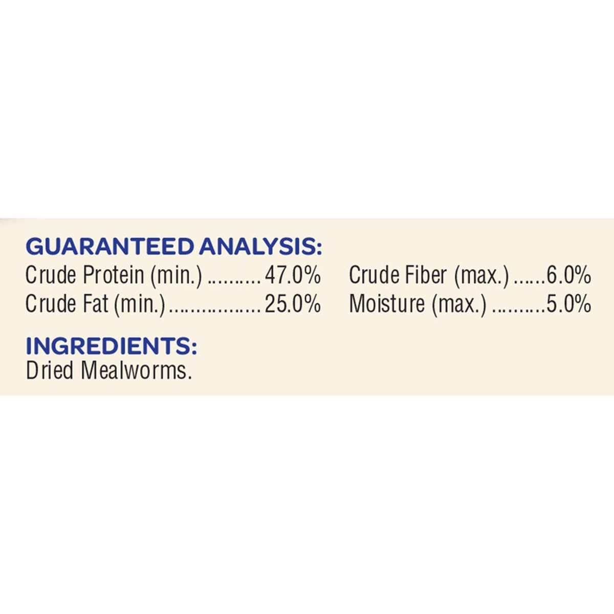 Ideal for Year-Round Feeding Dried mealworms offer the nutritional value of live mealworms and can be offered to wild birds year-round. Packed with protein and other essential nutrients, they help support healthy growth, feather development and overall well-being.