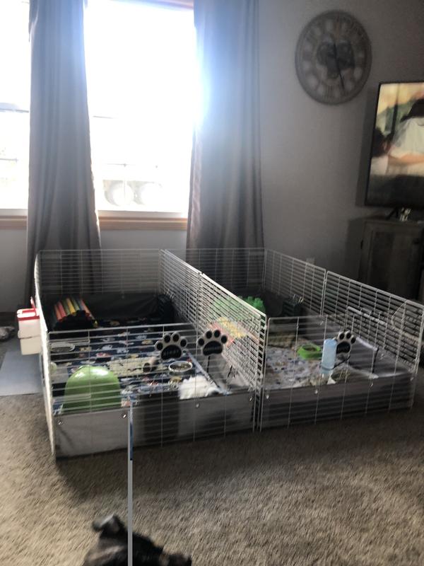 The cage was so easy to set up and it's the perfect square footage for two guinea pigs. It makes cleaning a breeze when paired with fleece bedding. The open living