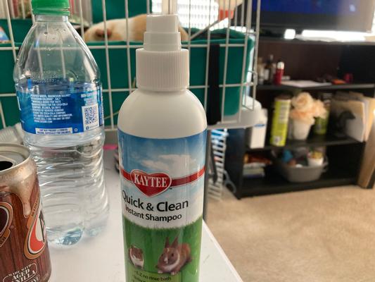 Wonderful small pet shampoo. Spray either on the brush or directly onto your furry friend. So convenient! My guinea pigs love to be groomed with this lovely, calming