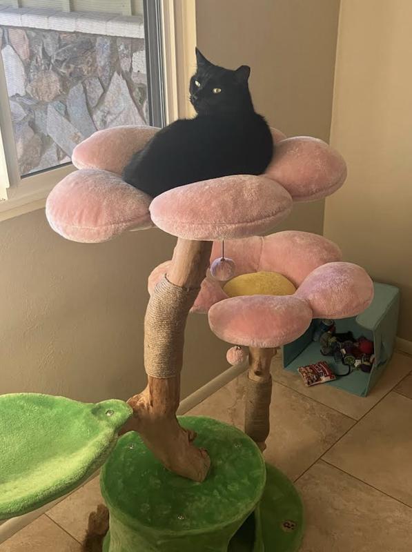 I purchased this beautiful cat tree for my son’s new kittens and they just love it. They enjoy looking out the window and sleeping on its “blossoms”! It’s very well