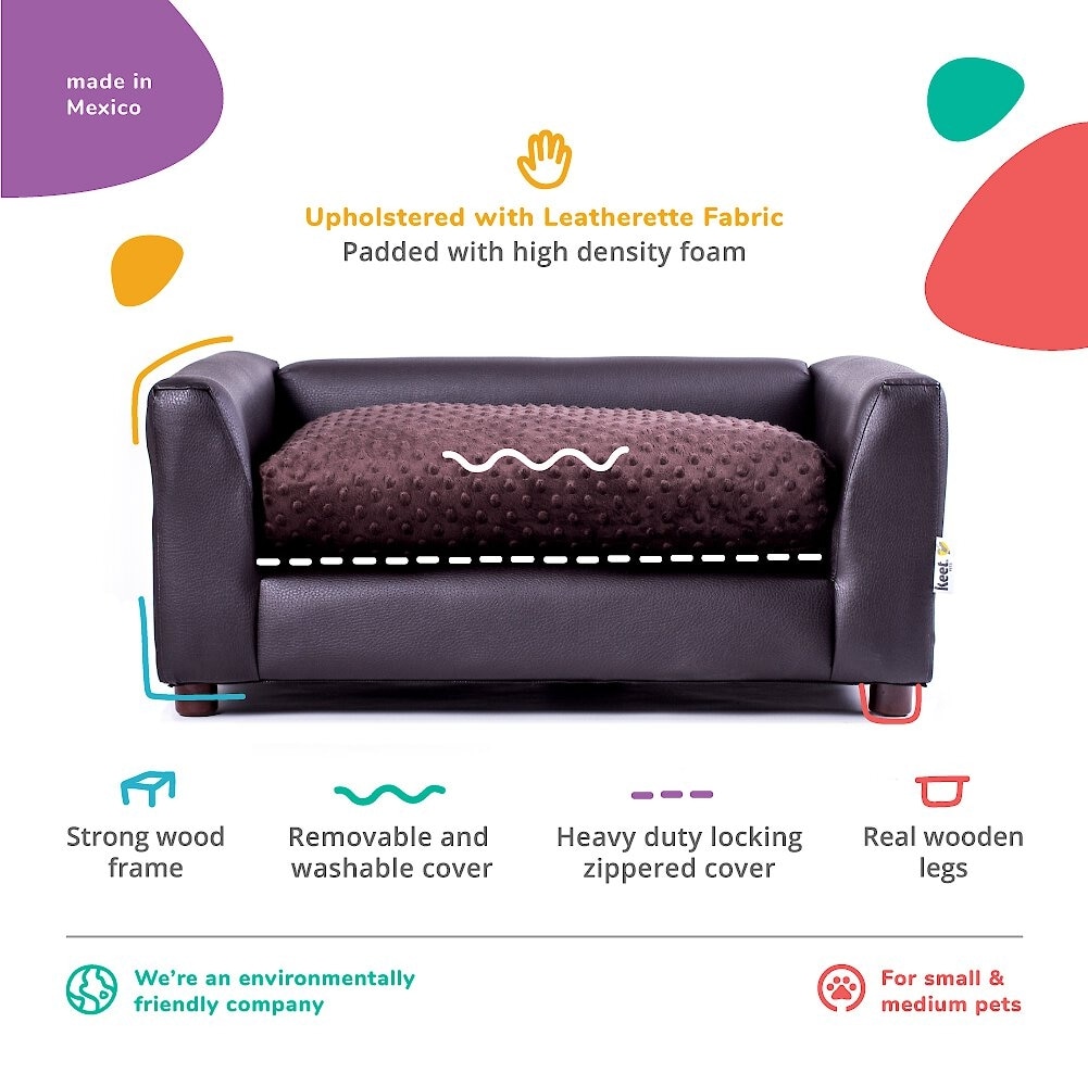 Keet Fluffly Deluxe Sofa Dog Bed with Removable Cover, Chocolate, Medium