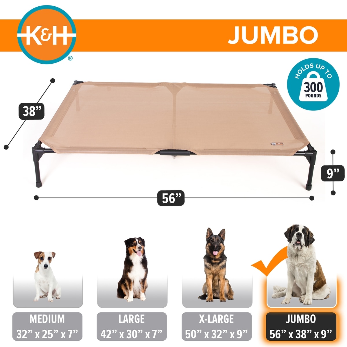 K&H Pet Products All Weather Outdoor Elevated Cot Dog Bed, Tan, Jumbo